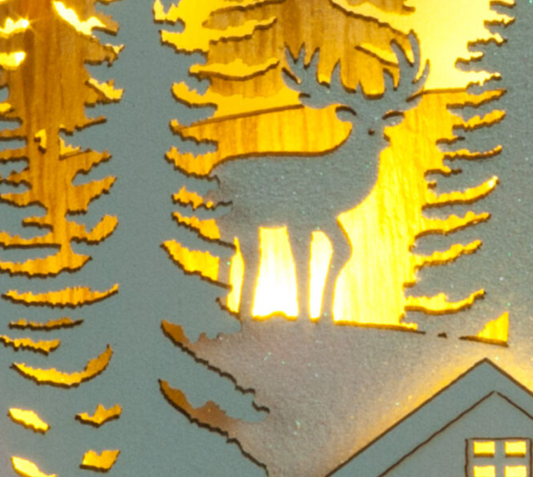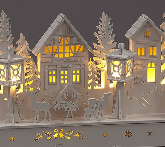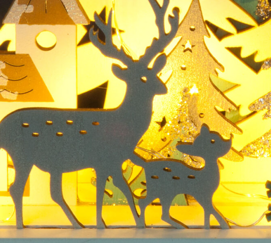 Battery Operated 19cm Wooden Village Scene with Deer & Trees
