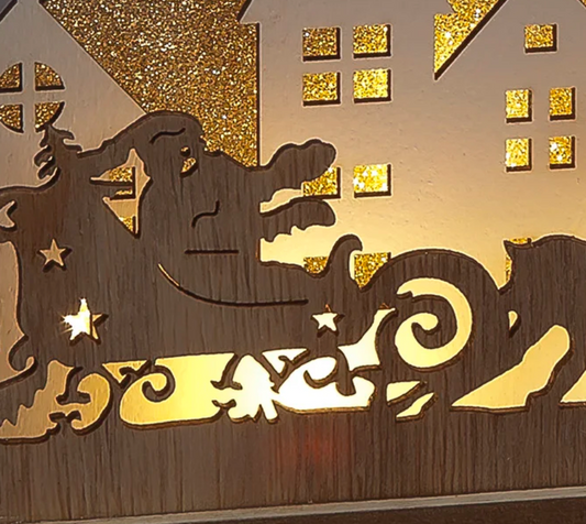 Battery Operated 20cm Wooden Village with Santa & Sleigh