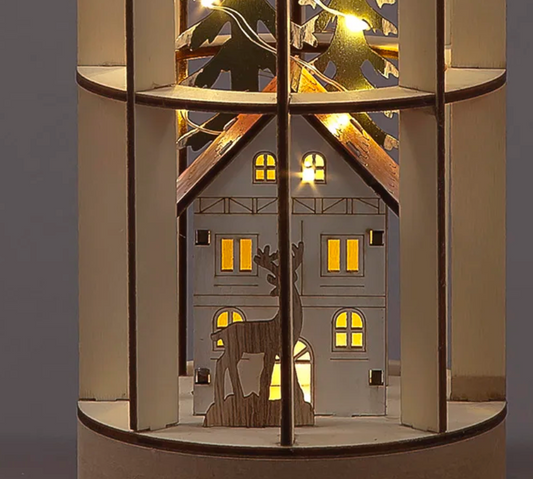 Battery Operated 21cm Wooden Round Village Landscape with 6 Warm White LEDs