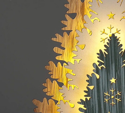 Battery Operated 33cm 3-Layer Wooden Tree with Glitter & 13 Warm White LEDs