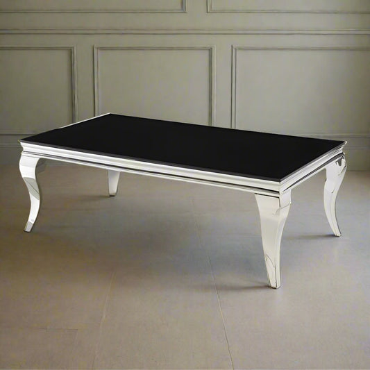 Carlton Stainless Steel Legs & Black Glass Coffee Table