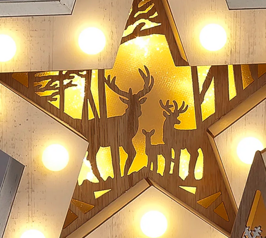 31cm Battery Operated Wooden Scene with Trees & Deer & 5 Warm White LEDs
