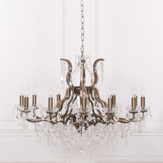 Gold 12 Branch Shallow Cut Glass Chandelier