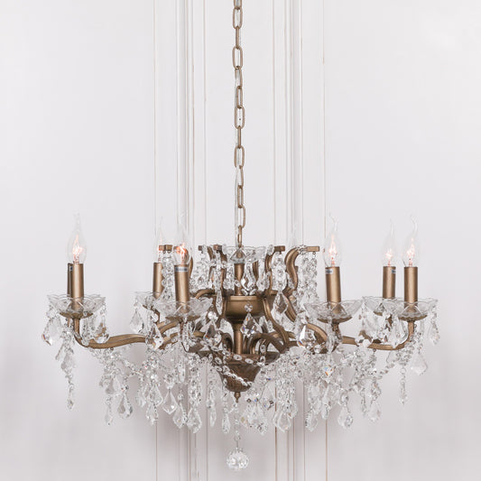 Gold 8 Branch Shallow Cut Glass Chandelier