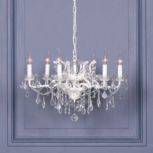 White 6 Branch Shallow Cut Glass Chandelier