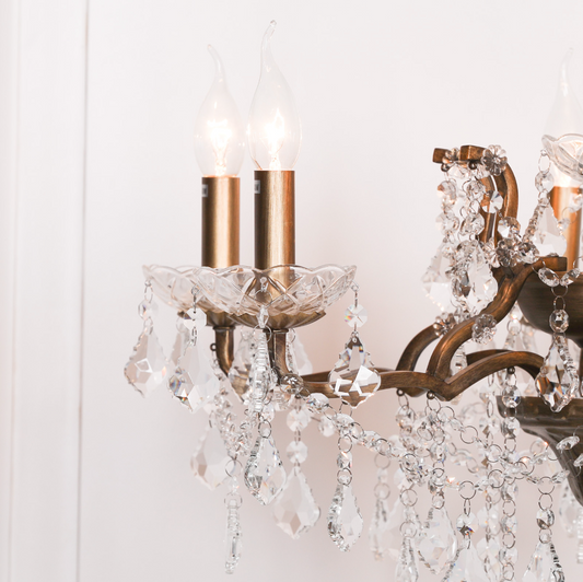 Antiqued Gold 2 Branch Cut Glass Chandelier Wall Light