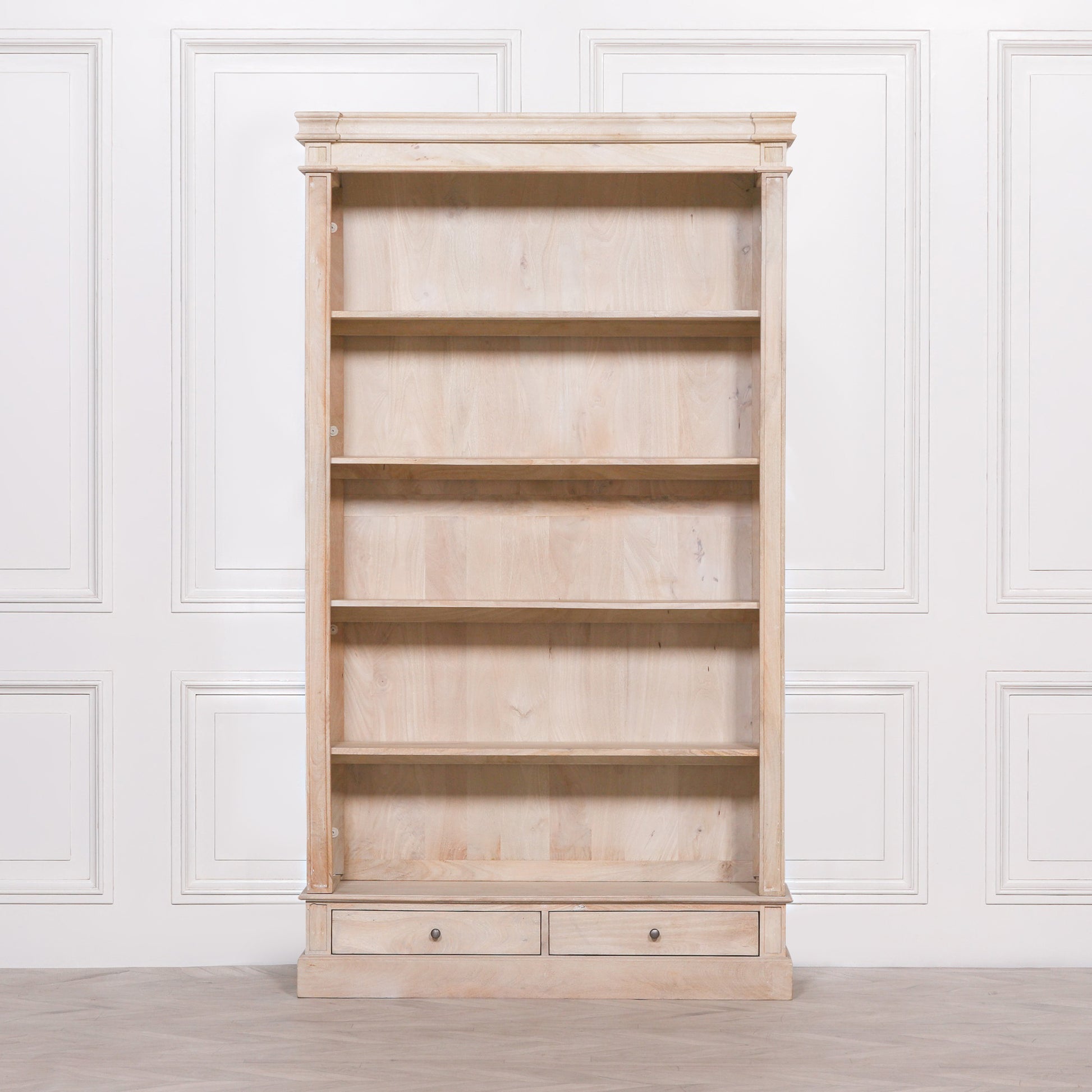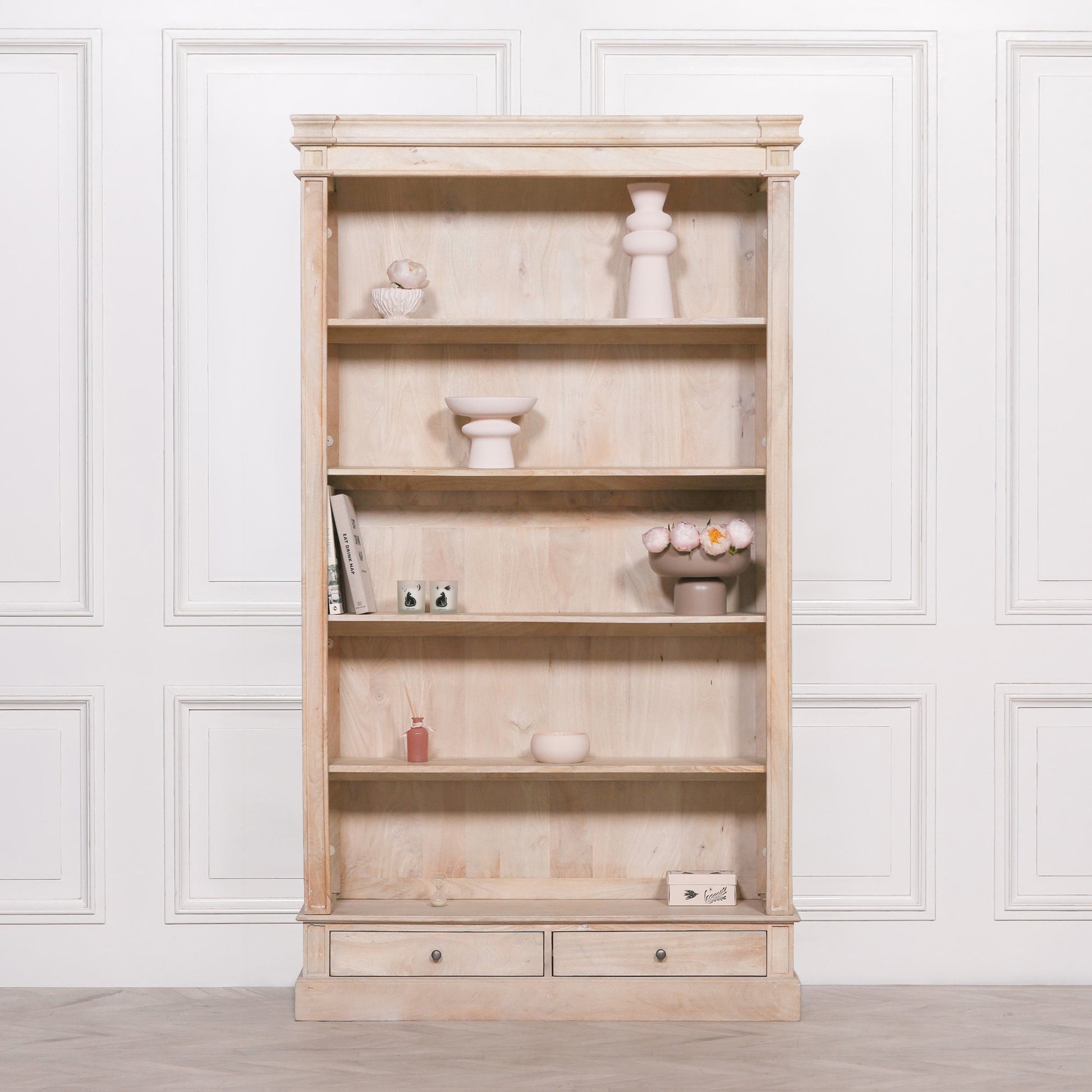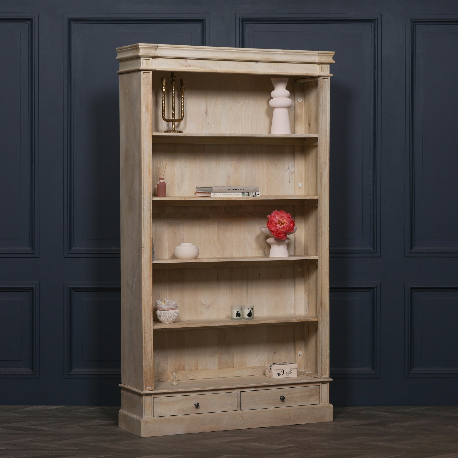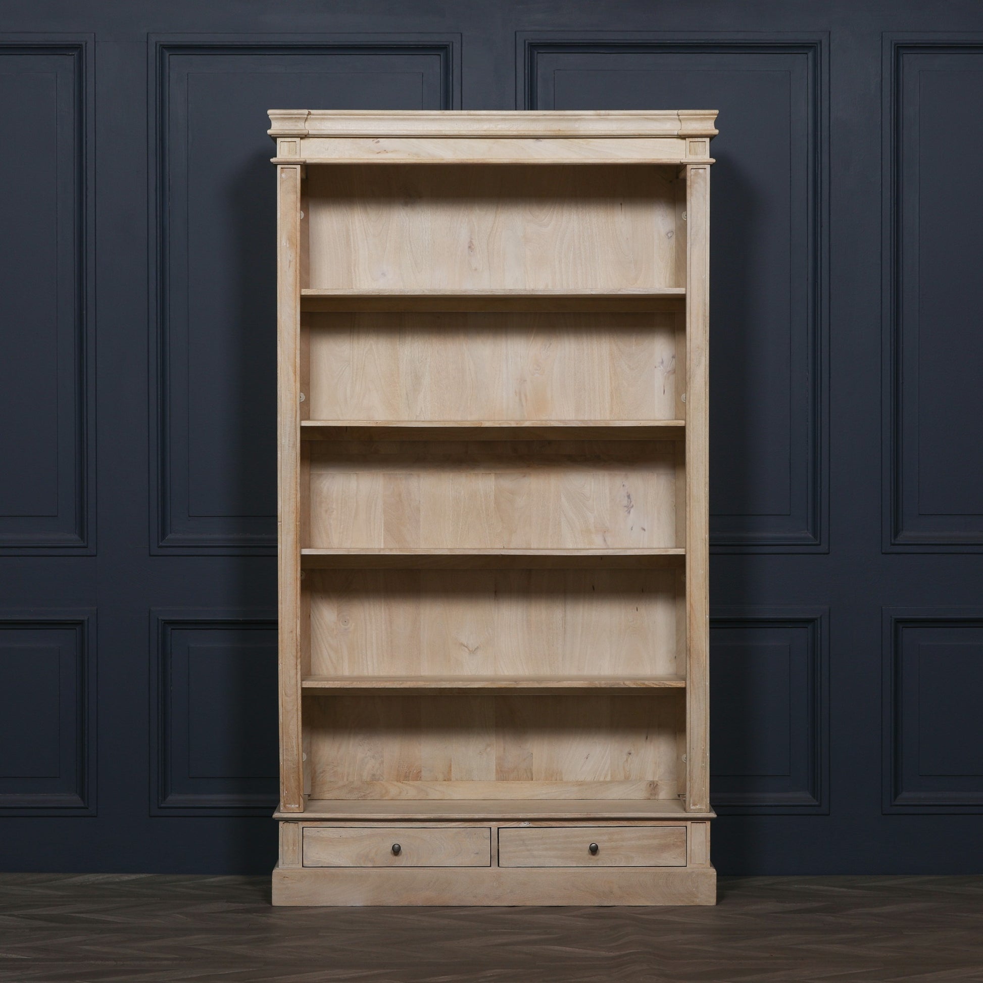 Rustic Wooden Single Open Bookcase with Drawers crafted from blanche mango wood