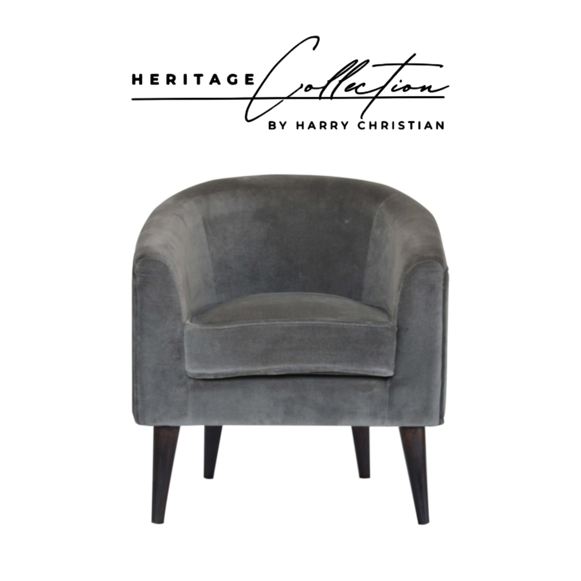 Heritage Collection Grey Velvet Nordic Style Armchair