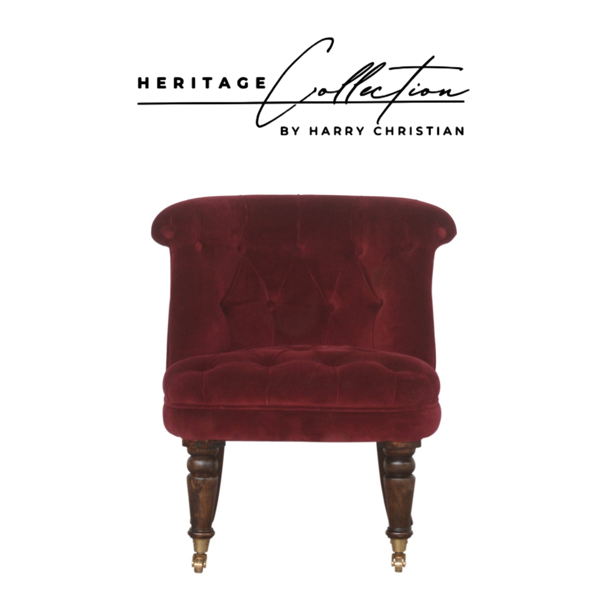 The Heritage Collection Wine Red Velvet Accent Chair is a luxurious and striking addition to any interior, perfectly blending classic elegance with contemporary appeal. Upholstered in sumptuous wine red cotton velvet, this chair offers a plush, velvety texture that invites relaxation and adds warmth to your space. Its solid wood structure, crafted from sustainable mango wood, provides exceptional strength and durability, ensuring long-lasting use. Carefully handcrafted with attention to detail, each piece showcases artisan craftsmanship while supporting eco-friendly practices. The chair’s design features a sleek, refined silhouette with sturdy mango wood legs that complement the rich upholstery, delivering both stability and style. Ideal as a statement piece or an accent in living rooms, bedrooms, or entryways, this versatile chair enhances a variety of interior aesthetics with its bold colour and timeless elegance. It arrives securely packaged for safe delivery and is available with free shipping on the UK mainland, making it an elegant, sustainable choice for elevating your home decor.